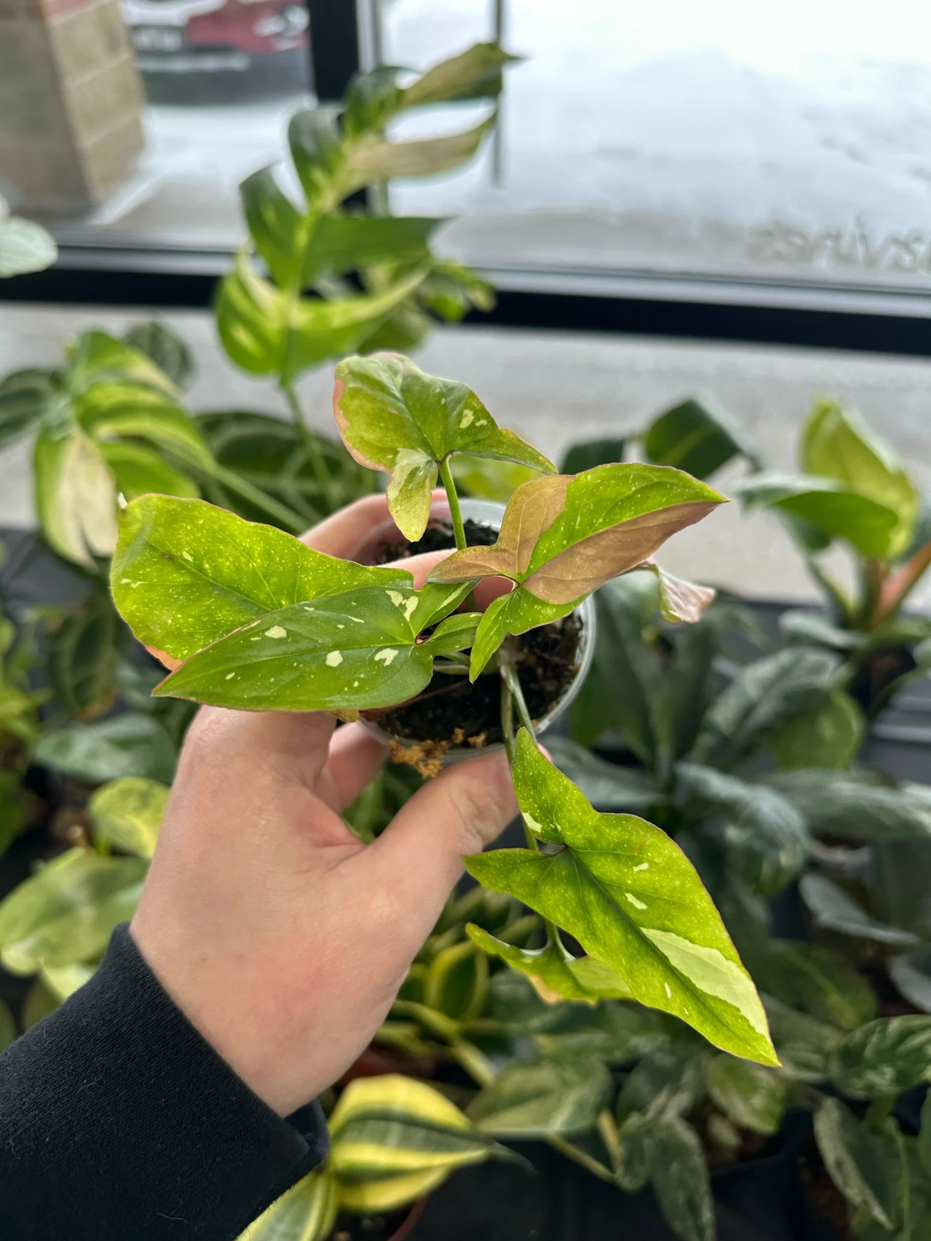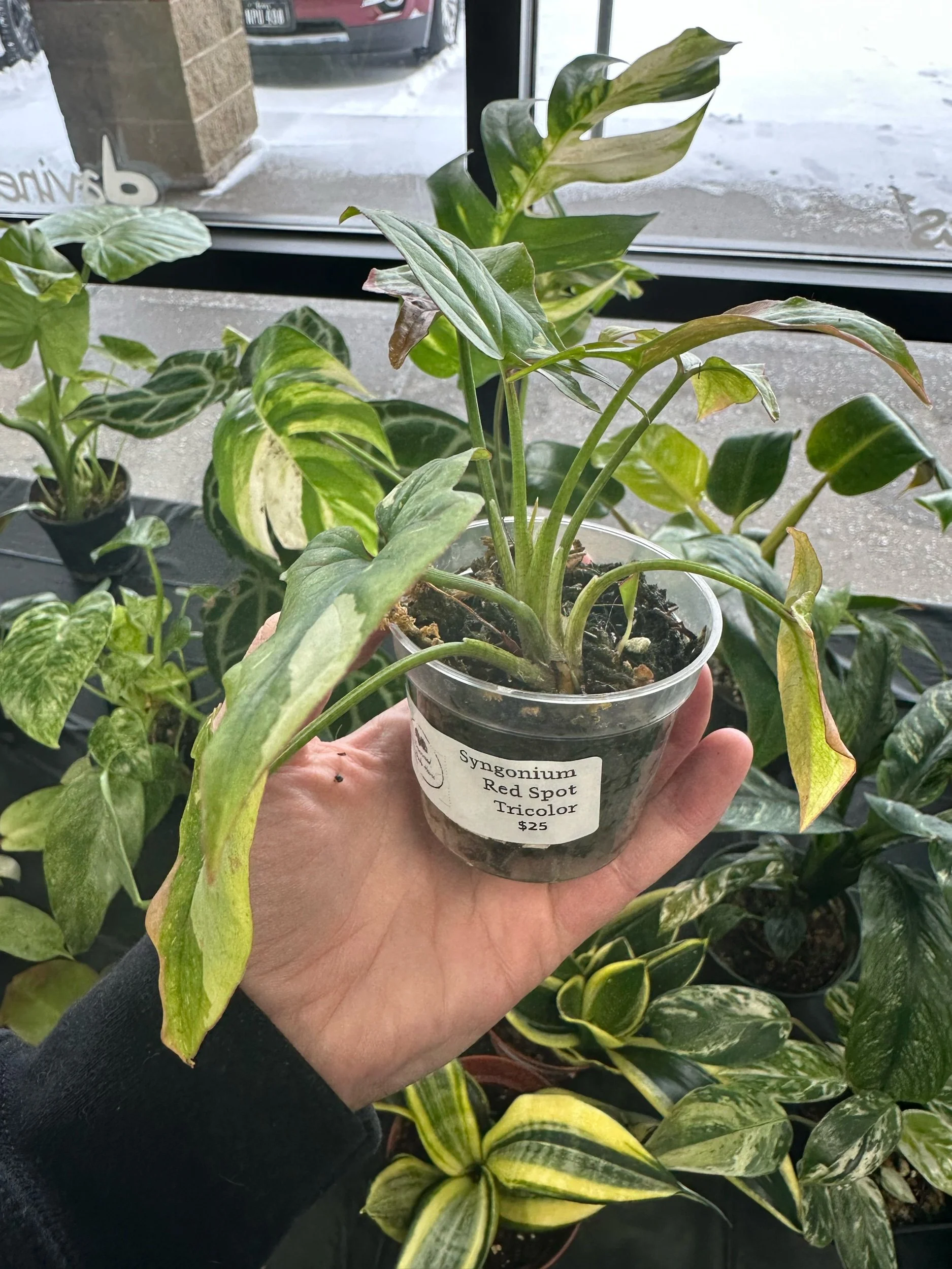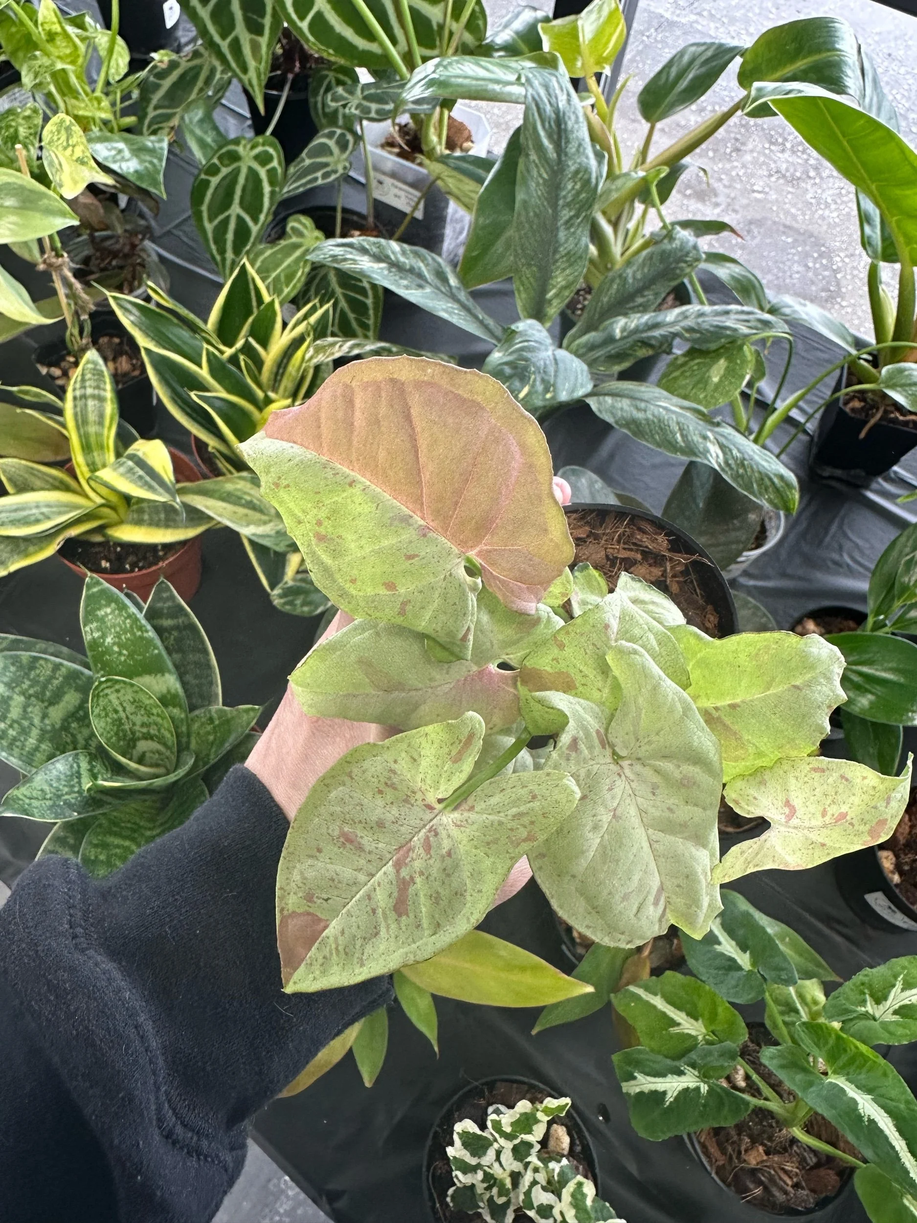 Syngonium 'Red Spot Tricolor' is a low-maintenance choice that adds a splash of color and texture to any indoor plant collection. Its adaptability and attractive leaves make it a favorite among houseplant enthusiasts seeking unique foliage varieties.